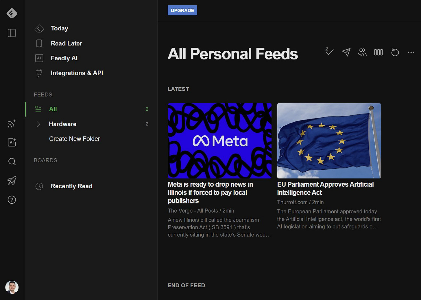 I don’t like AI or an automated algorithm deciding what news I read. This is why I use RSS and Feedly to get the latest news from the websites I trust.